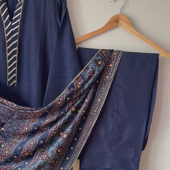Crafted from premium Korean raw silk, this suit is elevated with delicate handmade organic dyeing and intricate Kamdani work. Styled with a luxurious Korean shamoze silk dupatta, it embodies pure sophistication