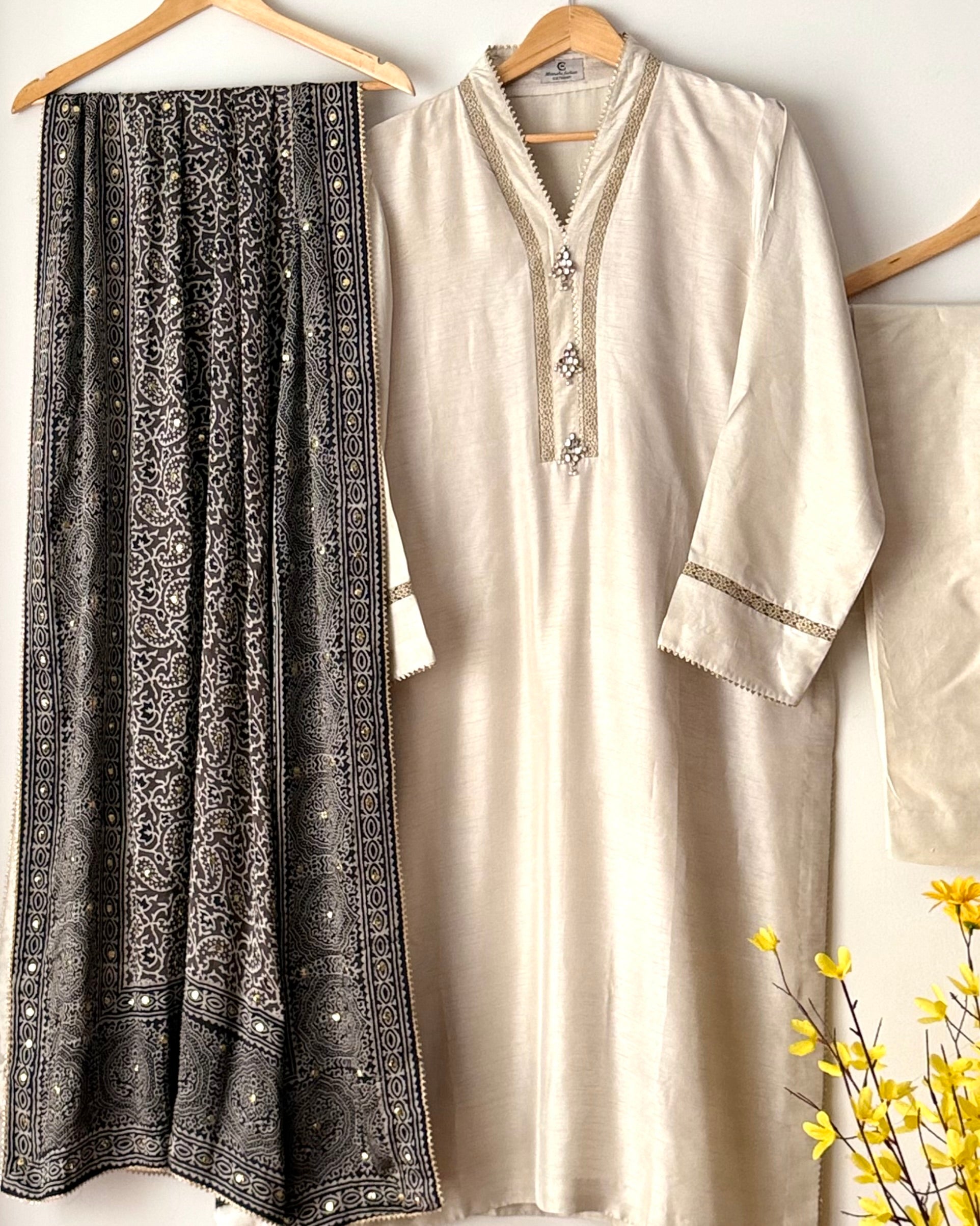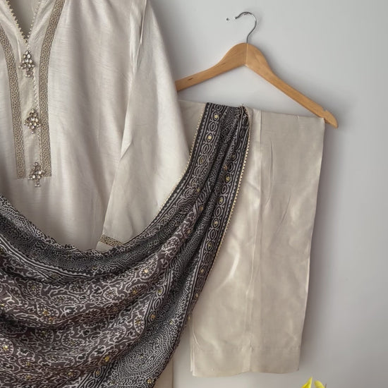 - Color: pearl white with grey dupatta