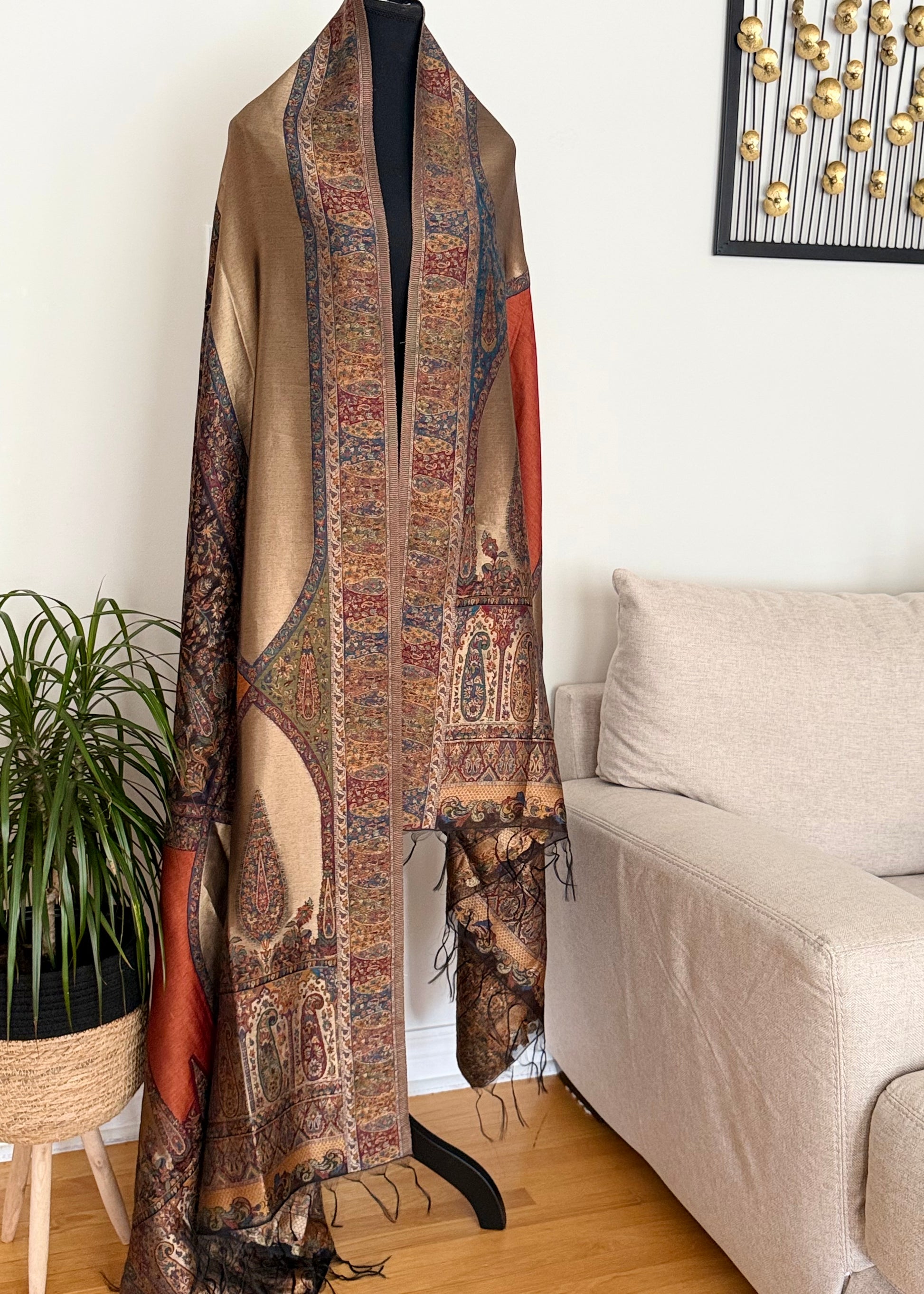 Moonlight kani silk shawl with beautiful contrast of rusts