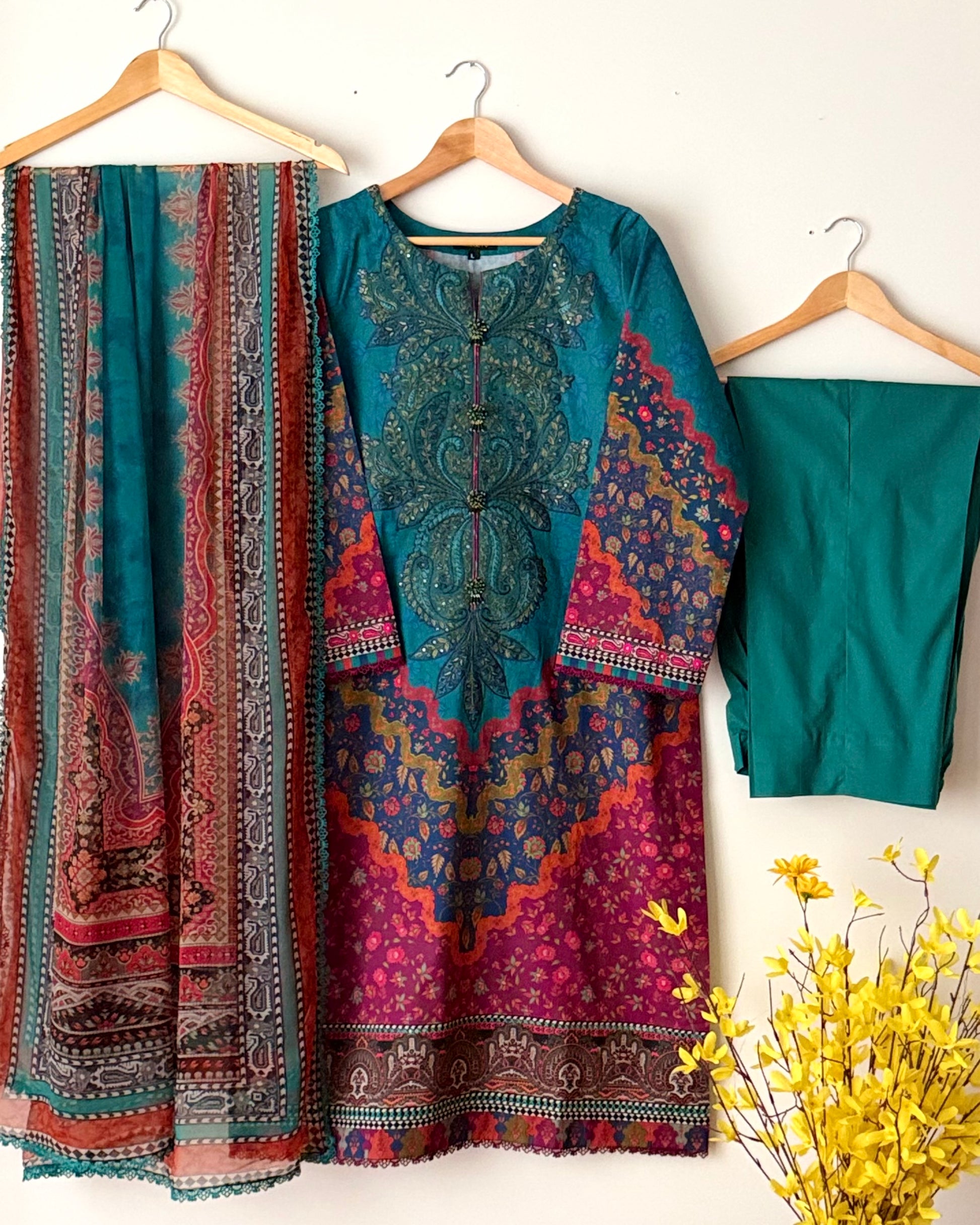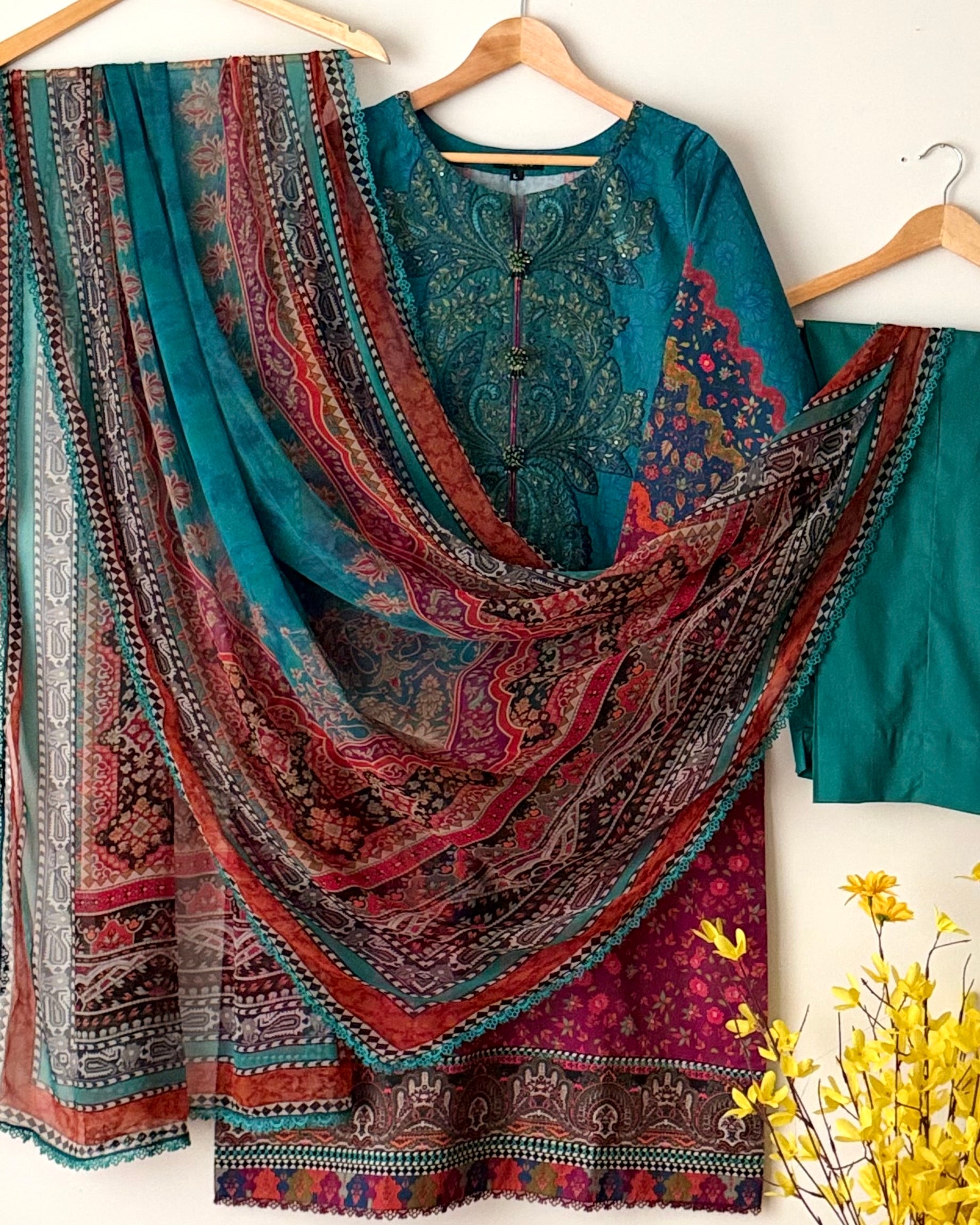- Dress Type: Stitched 3 Piece (Shirt + pant + Dupatta)