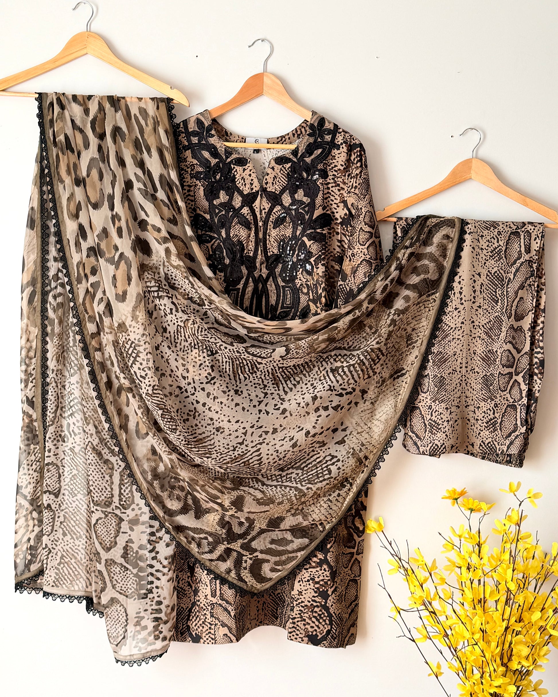 - Dress Type: Stitched 3 Piece (Shirt + pant + Dupatta)