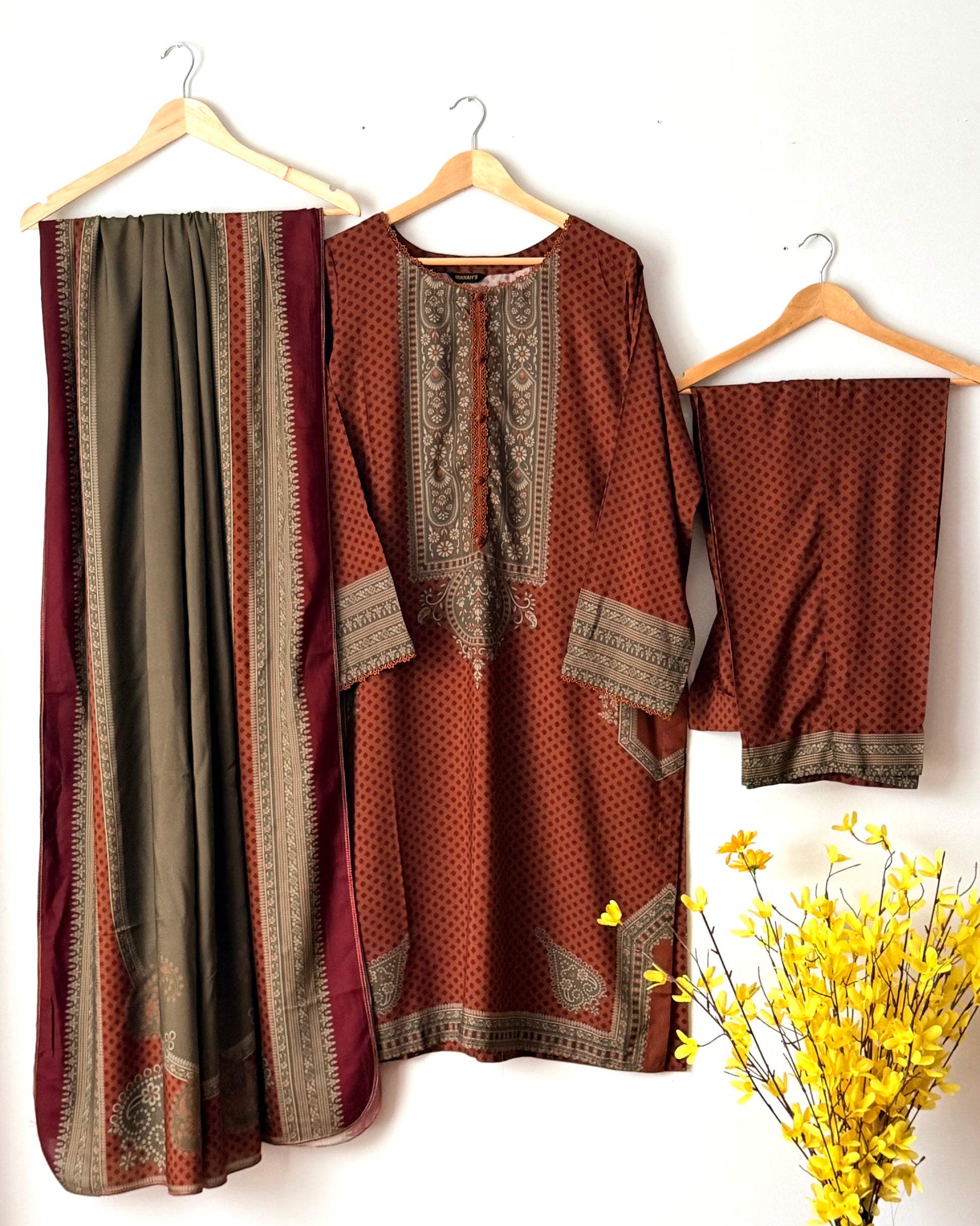 - Dress Type: Stitched 3 Piece (Shirt + pant + Dupatta)