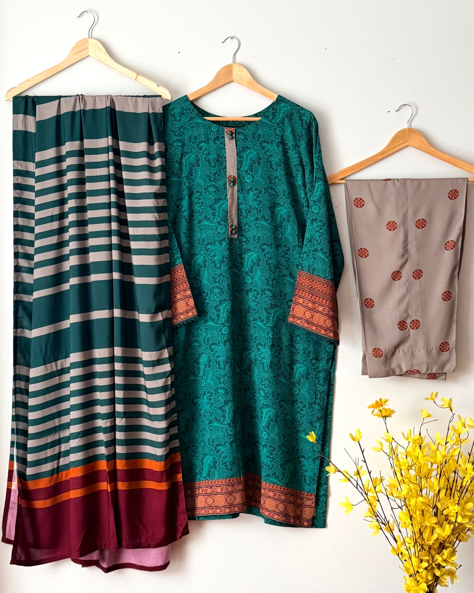 - Dress Type: Stitched 3 Piece (Shirt + pant + Dupatta)